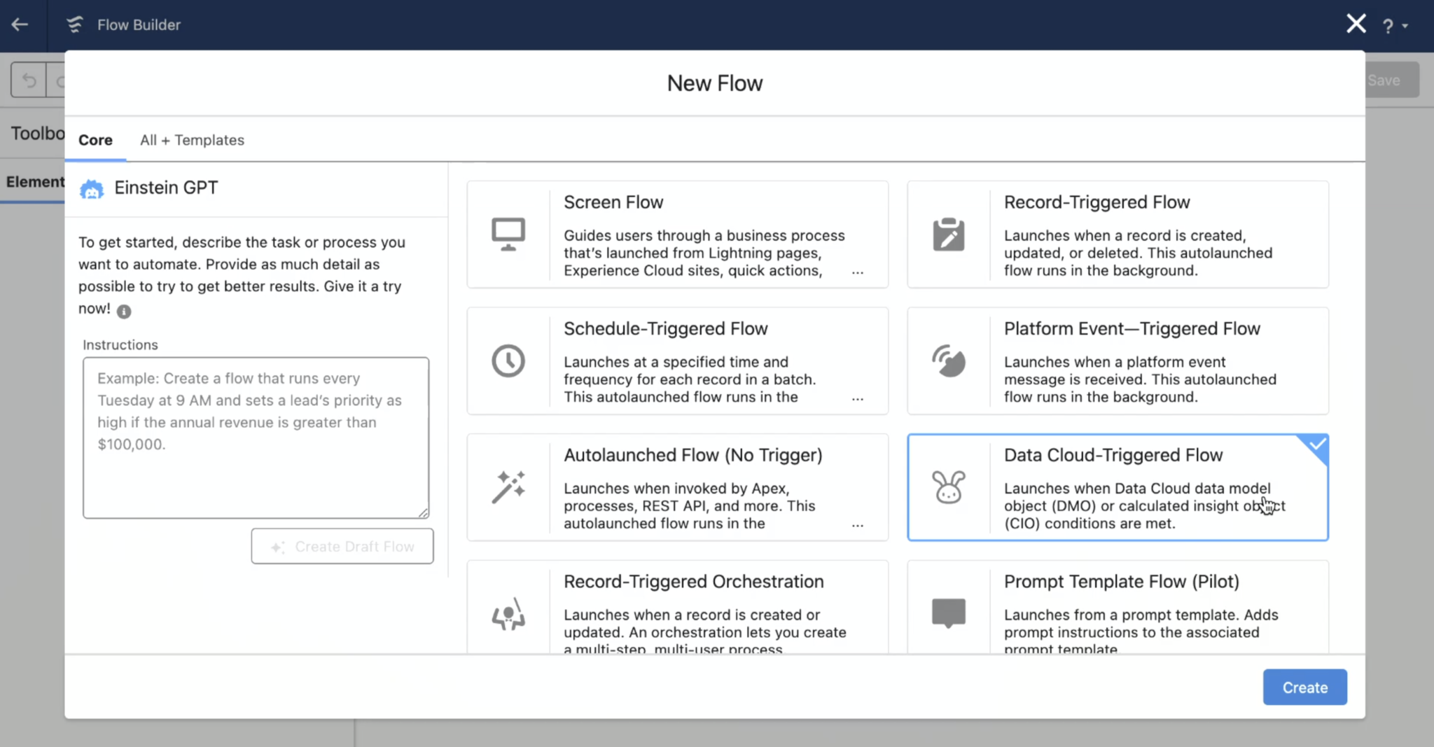 Die Integration von Data Cloud in die Einstein 1-Plattform ist eine bedeutende Neuerung. Diese nahtlose Verknüpfung eröffnet den Anwendern die Möglichkeit, ihre Automatisierungsfunktionen durch die Nutzung dynamischer Echtzeitdaten aus verschiedenen Systemen zu erweitern. Im Ergebnis sind Benutzer nicht mehr auf statische Informationen beschränkt, sondern können Workflows auslösen, die auf bestimmten Bedingungen basieren. Diese Bedingungen sind mit berechneten Insight-Objekten (CIOs) oder Data Cloud-Datenmodellobjekten (DMOs) verknüpft. Dies gewährleistet, dass die Automatisierung nicht nur äußerst reaktionsschnell ist, sondern auch intelligent agiert. Es ermöglicht datengetriebene Entscheidungsfindung und führt zu einer gesteigerten Effizienz unserer Geschäftsprozesse.