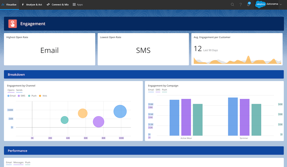 Geschäftliche Auswirkungen können mit datengesteuerten First-Party-Marketings und -Werbungen analysiert werden und mithilfe der Analyse-Apps und tiefergehenden Einstein Marketing Insights den Return on Investment ( ROI) und den Customer Lifetime Value (LTV) optimieren.