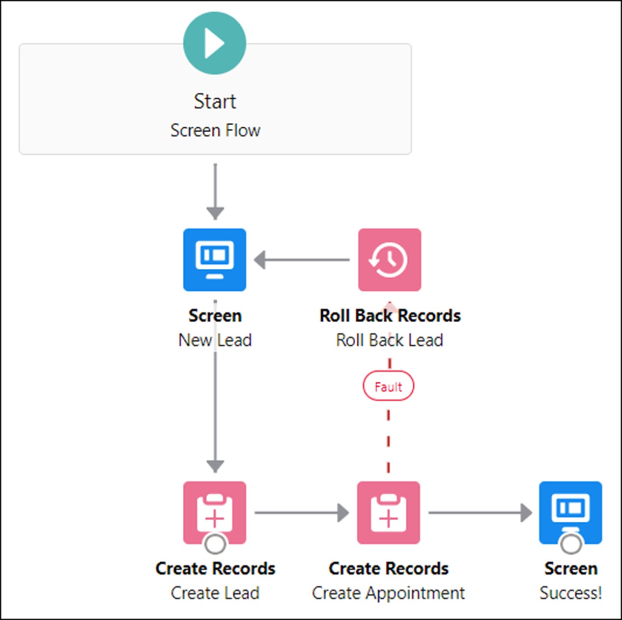 Flows bieten ein neues Element, das Roll Back Records Element, welches ausstehende Änderungen an Datensätzen innerhalb des ganzen Flows zurücksetzen kann, wenn ein anderes Flow Element einen Fehler verursacht.