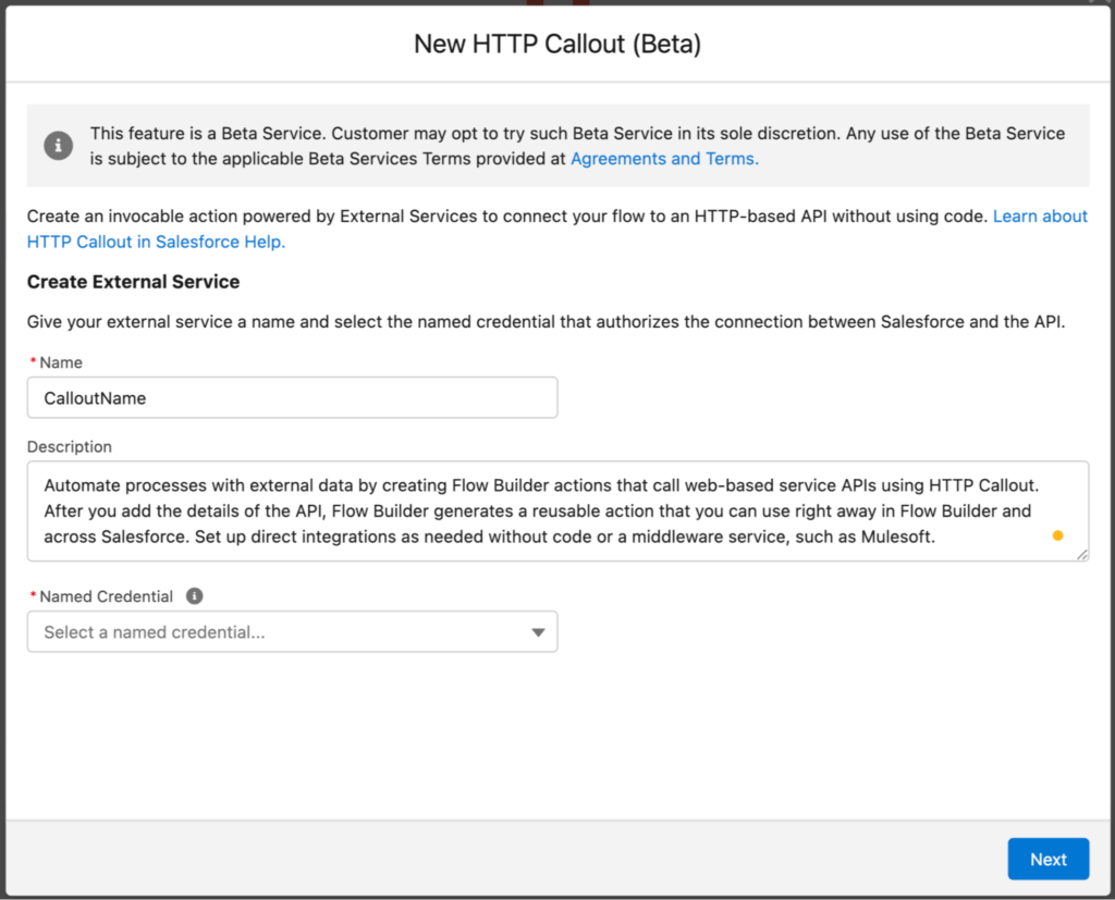 HTTP Callout (Beta) Verbindung mit Klicks statt Code: Um externe Daten in Ihre Flows zu laden, können Sie zukünftig HTTP-Callouts verwenden. Fügen Sie einfach die benötigten Informationen der API hinzu und der Flow Builder generiert eine Aktion. Sie können im Flow-Builder ohne Code direkt darauf zugreifen. Da sich diese Funktion noch in der Beta-Phase befindet, werden derzeit nur GET-Aufrufe unterstützt.