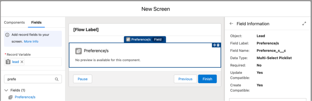 Dynamische Formulare für Flows unterstützen jetzt Mehrfach-Auswahllisten: Auch wenn es noch gewisse Einschränkungen bezüglich dynamischer Formulare für Flows gibt, wurde mit der Version Winter '23 diese Funktion allgemein verfügbar gemacht. Mit der Version Spring '23 wird nun auch die Komponente mit Mehrfachauswahl und Mehrfachauswahllisten unterstützt.
